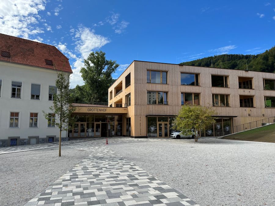 Seit 1867 prägt der Grottenhof im Westen von Graz die Ausbildung des bäuerlichen Nachwuchses. Im Zuge einer umfassenden Investitionsoffensive für das landwirtschaftliche Schulwesen erfolgte eine ganzheitliche Modernisierung. Das alte Schulgebäude wurde nicht nur saniert, sondern auch zu einem zeitgemäßen Internatsgebäude umgestaltet. Ein nachhaltiger Holzbau bietet nun Platz für Unterrichts- und Verwaltungsräume, eine Küche und einen modernen Turnsaal. Diese Verbindung von Geschichte und Zukunft schafft eine angenehme Atmosphäre für das Leben und Lernen.