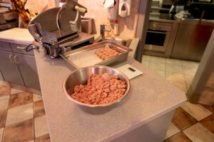 „Das Schöne an der eigenen Produktion ist“, so der Fleischermeister, „ich kann unseren Kunden ganz genau erklären, wo das Fleisch herkommt. Selbst bei unseren verarbeiteten Produkten, weiß ich, welche Gewürze und Mischung, wie viel Salz und Fett verwendet und welcher Anteil von Schweine-, Rind- oder Kalbfleisch verarbeitet wurde.“ Diese Informationen kann nur der Fleischermeister erklären und weitergeben und so können wir uns auch von anderen Anbietern abheben. Seit etwa zweieinhalb Jahren setzt die Gourmetfleischerei auf Bio – und das mit vollem Erfolg: „Anfangs musste ich die Leute schon beruhigen und ihnen erklären, dass Bio nicht gleichbedeutend mit überteuert ist. Natürlich ist der Preis ein bisschen höher, obwohl wir uns dazu entschlossen haben, hier sehr knapp zu kalkulieren und nicht die gesamten Mehrkosten an die Kunden weiterzugeben. Unsere Kunden haben unser Bio-Initiative sehr gut angenommen und mitgetragen. Das freut mich.“