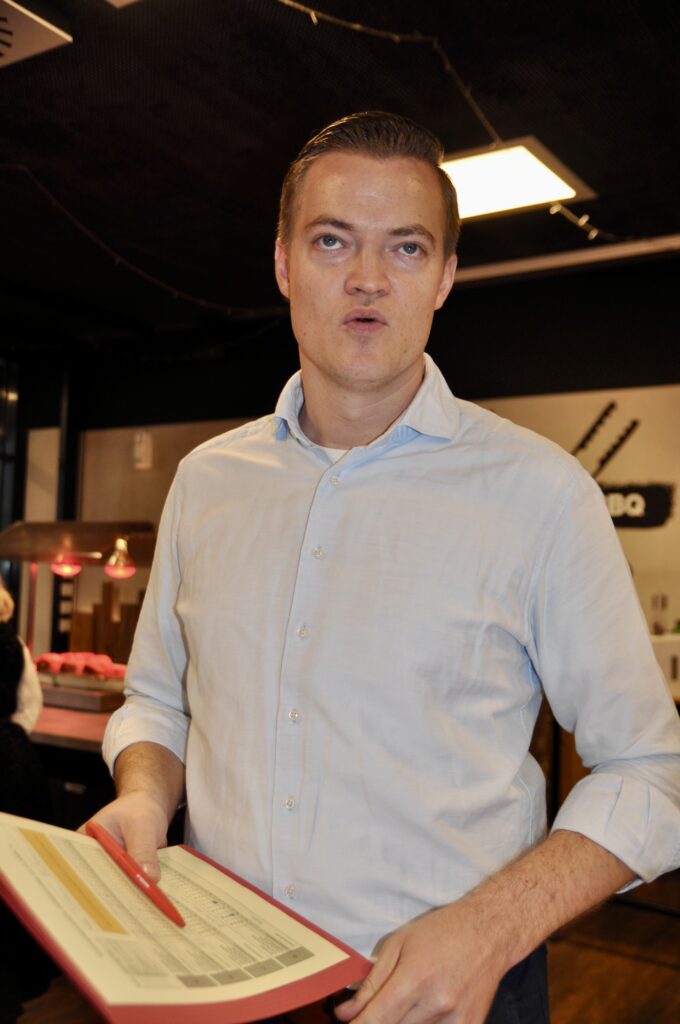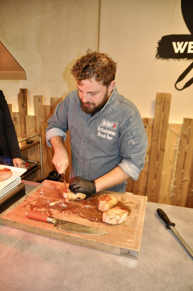 15 Kostproben, jeweils von der Karreerose vom kurzen Karree, wurden vom Weber- Grillmeister und Fleisch-Diplomsommelier Patrick Bayer perfekt für die Verkostung zubereitet. Die Karreerosen wurden mit leichtem Fettrand und ungewürzt auf eine Kerntemperatur von 62 °C gegrillt und waren rund vier Zentimeter dick.