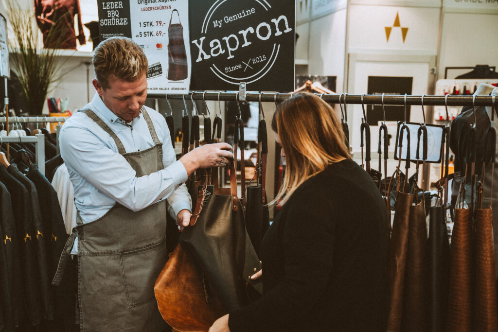 Aussteller stehen hinter der Messe