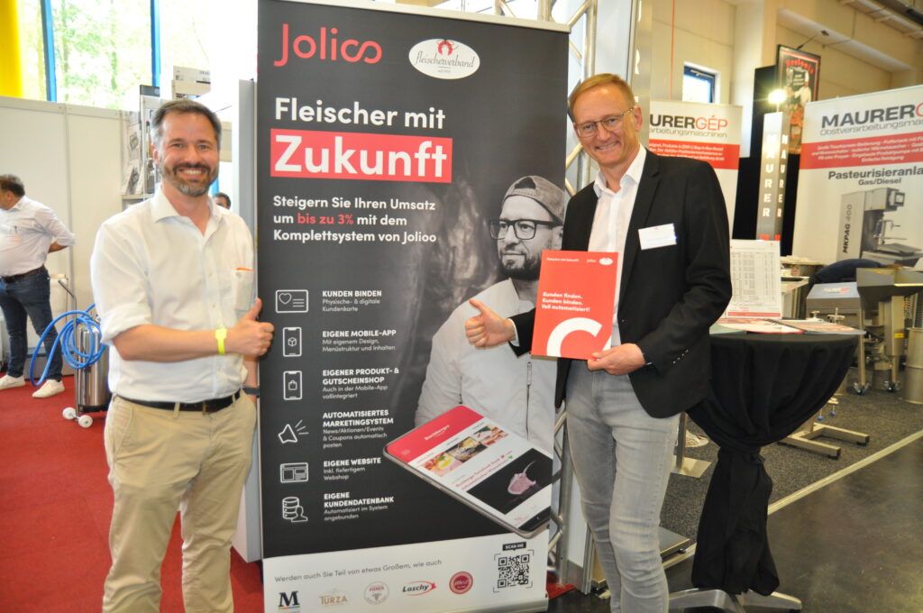 Weitere hochaktuelle Themen beim Fleischerverband: Kundenbindung per App, Gutscheine per App, Webshops und Homepagegestaltung: Geschäftsführer Mag. Wolfgang Hartl (r.) und jolioo-Co-Founder und Vertriebsleiter Mag. Stefan Lang. © HaRo