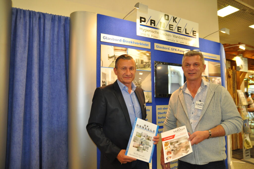 Immer die passende Wandverkleidung: Mitinhaber Christian Kraus (r.) und Rudolf Kurz von OK-Paneele präsentierten in Wieselburg Lösungen für den handwerklichen Lebensmittelhersteller. © HaRo