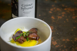 Mit der etwas ironischen „Stelze vom Wildhasen“ brachte Josef Floh auch den zweitbeliebtesten „Cut“ neben dem Rücken auf die Teller. Vorder- und Hinterläufe sind schließlich ein perfektes Schmorfleisch. Die leichte Süße des Hasenfleischs konterkarierte er mit einer Creme aus Radicchio, die feine Bitterstoffe mitbrachte. Und Floh stellt im zehngängigen Menü auch eine immer beliebter werdende Zubereitungsart vor: Asiatische Aromen, die mit dem zarten Fleisch gut harmonieren. So wird in der Sichuan-Küche Chinas gerne Hase verkocht. Vor allem die reichen Salzhändler, deren Gerichte Kenner unter dem „Xiaohebang-Stil“ kennen, bereiteten das Wildfleisch gerne im Wok und mit dem „roten Öl“ mit Chili und Sichuan-Pfeffer zu. Auch Ingwer wird hier gerne eingesetzt – so wie es Floh bei seiner gerösteten Hasenleber tat. Der im chinesischen Stil zubereitete Bao Bun, gefüllt mit Hasen-Bauch und Kimchi, brachte das Wildtier in einer zeitgemäßen „Streetfood“-Variante des Haubenkochs auf die Teller. Beflügelt von den gereiften Magnumflaschen Roter Veltliner und Riesling Stefan Bauers formte sich bei diesem außergewöhnlichen „Schüsseltrieb“ ein seltsamer Gedanke: Vielleicht sollte man es dem chinesischen Tierkreis nachmachen und 2024 ein „Jahr des Hasen“ ausrufen …