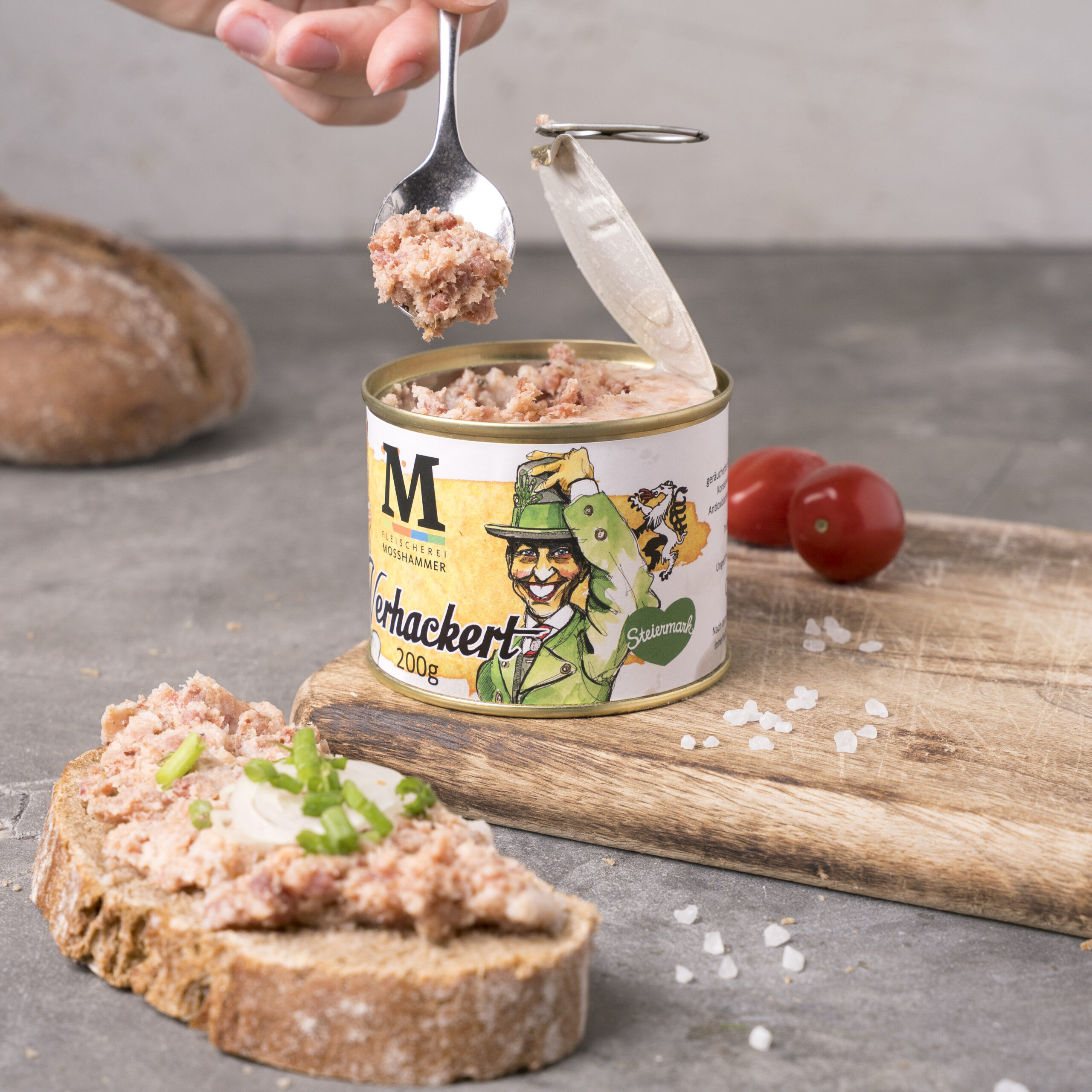 Die Grazer Fleischerei Mosshammer steht seit Jahrzehnten für Qualität, Handwerk und steirischen Genuss. Nun überrascht Fleischermeister und Innungsmeister Josef Mosshammer mit einer besonderen Idee: einer Brettljause in der Dose. Gemeinsam mit Daria De Astis entwickelte er den sogenannten „Steirer Dreier“, der drei beliebte steirische Spezialitäten vereint – Verhackertes, Zwiebelstreichwurst und Steirerwurst (eine Krainer-Variante).