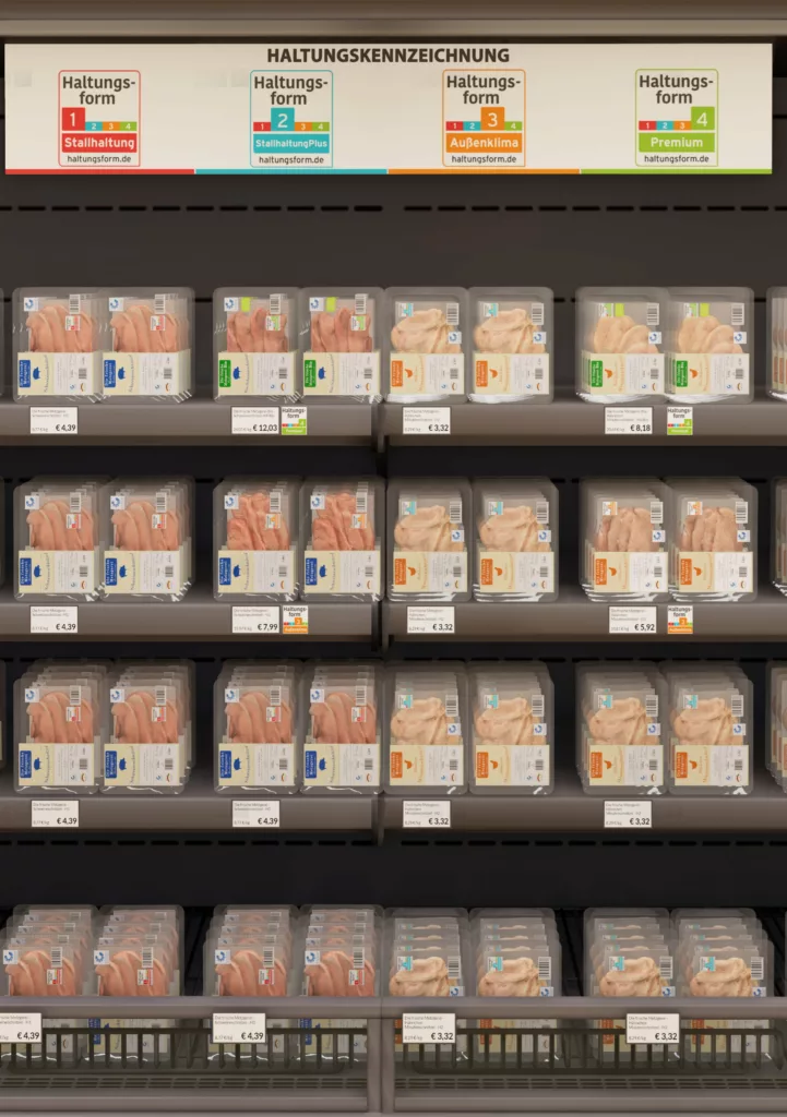 Trotz unübersehbarer Tierwohlkennzeichnung liessen die Kaufentscheidungen der Studienteilnehmer keineswegs mehr Tierwohl zu. © ILR / Uni Bonn
