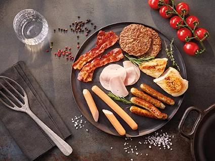 Ein modulares Komplettsystem vereinfacht Anwendern die automatisierte Verarbeitung von Bacon und weiteren natürlich geformten Fleischprodukten. Es sorgt mit geringem Platzbedarf für noch mehr Effizienz im Press-to-Slice-Prozess – und unterstützt fleischverarbeitende Betriebe dabei, ihre Erträge zu steigern. Die auf der Anuga FoodTec präsentierte schlüsselfertige Linie besteht aus verschiedenen, perfekt aufeinander abgestimmten Hochleistungsmodulen: Neben der Hoegger X3 Formpresse und dem neuen PtS (Press-to-Slice)-Modul mit Scan- und Positionierfunktion für mehrbahnige Slice-Linien ist das Herzstück der Linie der neue Slicer Formax SX550. Er besitzt einen besonders breiten Schneidschacht von 550 mm, ermöglicht damit das Schneiden mehrerer Produkte gleichzeitig und erreicht eine hohe Schneidekapazität.