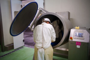 Auch der Feinkostmischer von Vakona ist in der Produktion der Fleischerei Böck zu finden. Vakona Feinkostmischer wurden für den Einsatz im Bereich der Feinkostherstellung konzipiert. Sie eignen sich für das Mischen und Mengen von allen Arten von Lebensmitteln. Die Maschinen bestechen durch eine hohe Benutzerfreundlichkeit, die durch einfache Bedienung und leichte Reinigung erreicht wird. Durch die große Auswahl von Ausstattungsmöglichkeiten wird eine hohe Individualisierung erzielt, um einen höchstmöglichen Grad der kundenspezifischen Produktoptimierung zu erreichen.