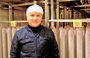 Vielen klingt der Werbespruch wohl noch im Ohr: „Stastnik ist Salamimeister“. Dragan Petrovic wäre demnach der Salamimeister vom Salamimeister. 70 bis 80 Tonnen Rohwurst verantwortet er als Produktionsleiter in Gerasdorf wöchentlich. „Der Prozess ist ein Zusammenspiel aus moderner Technik, menschlicher Erfahrung und Geduld“, fasst er einen zehnwöchigen Prozess zusammen, während dessen nicht nur 40 Prozent Gewichtsverlust des Schweinefleischs steht, sondern auch eine köstliche Metamorphose unter dem Schimmelrasen.