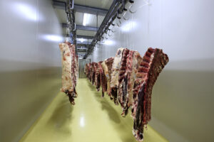 Rund 90 Mitarbeiter kontrollieren, selektieren, verarbeiten und verpacken jede Wochen Tonnen an Rind-, Schwein- und Kalbfleisch. Erste Station: der Anlieferungsbereich, wo die Ware u. a. auf Gewicht, Herkunft, Temperatur und pH-Wert kontrolliert wird. Danach geht es zu den Verarbeitern, die, wie wir uns überzeugen konnten, gut gelaunt, riesige Portionen in kurzer Zeit präzise zurechtschneiden. Durch eine weitere Schneise gelangt man in die Kühl- und Reiferäume, wo ein ausgeklügeltes System für perfekte Lagerung sowie Reifung sorgt.
