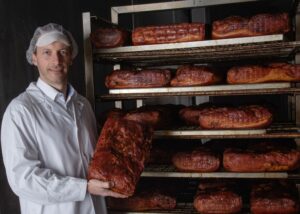 fünfte Generation am Werk. Christoph ist 2020 nach seinem Studium der Rechtswissenschaften in das Unternehmen eingetreten und tritt die Nachfolge von seinem Vater Rudolf an. Erfahrungen und Know-how im Wurst- und Schinken-Handwerk werden so innerhalb der Familie von Generation zu Generation weitergegeben. Das Erfolgsrezept!
