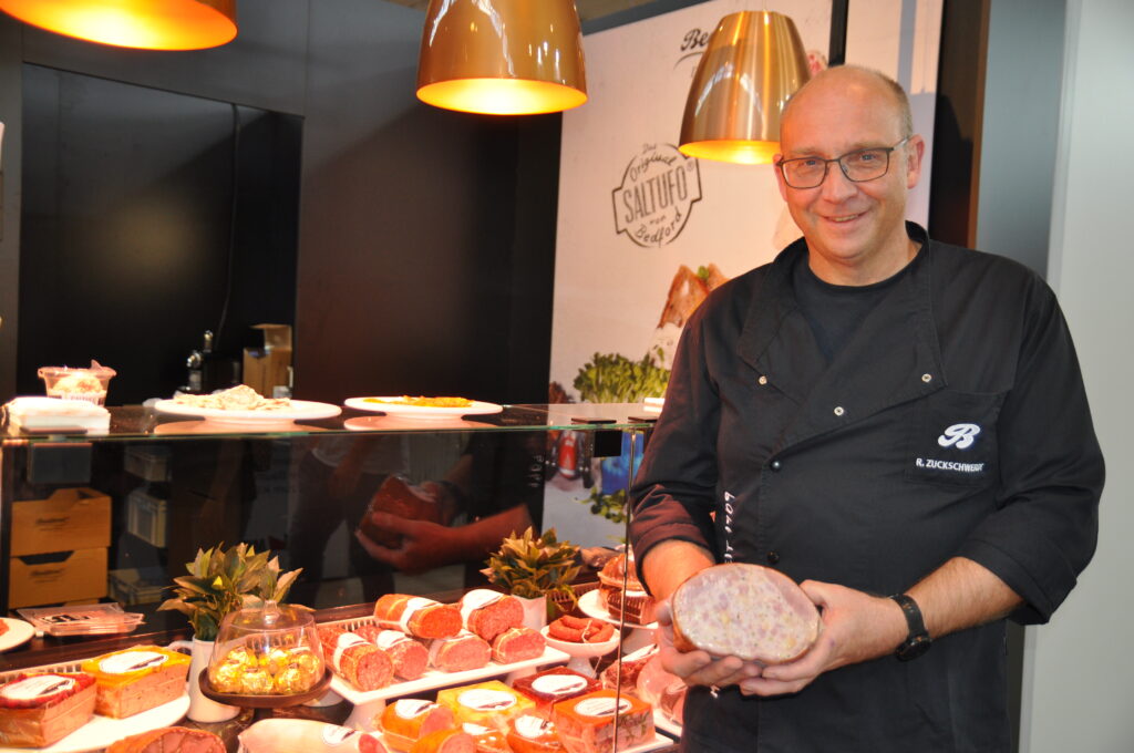 dem Handwerkskutter K 65. © HaRo mehr anzeigen Eine oberösterreichische Fleischerdelegation zu Gast bei Seydelmann (v. l.): Fleischermeister Franz Graf aus Munderfing, Matthias Strasser vom Seydelmann Österreichpartner, sowie die Fleischermeister Hans Peter Habel aus Tarsdorf, Michael Rosenhammer aus Neukirchen an der Enknach und Hermann Kaser aus Hochburg-Ach. © HaRo mehr anzeigen Aktuellste SB-Ladenbau-Ideen stellte Innenarchitekt Jürgen Beck von Schrutka-Peukert vor.© HaRo mehr anzeigen Weitere Austro-Fleischer zu Gast bei Seydelmann (v. l.): Österreich-Repräsentant Stefan Strasser sowie die Fleischermeister Erich Sturm aus Großnondorf, Daniel Schwarzböck aus Göllersdorf und Rudolf Tallian senior und junior aus Weiden. © HaRo mehr anzeigen Gute Laune bei den Zentrag-Besuchern aus Österreich (v. l.): Fleischerverbands- Obmann Anton Karl, Fleischerverbands-Gesch.ftsführer Wolfgang Hartl, Raimund Plautz und das Ehepaar Sittenberger von DIGI-Austria. © HaRo mehr anzeigen Darmhändler Saied Amjadi (r.) mit dem Kunden Roger Roca von Schara aus Barcelona.. © HaRo mehr anzeigen Variovac-Außendienstmitarbeiter Marco Bühl (l. v.), Gramiller-Verkaufsleiter Christian Hofer (Mitte) und Variovac-Verkaufsleiter Jürgen Krause mit dem Einstiegsmodell in die automatische Verpackung Optimus SE von Variovac.. © HaRo mehr anzeigen Geschäftsführer Heinrich