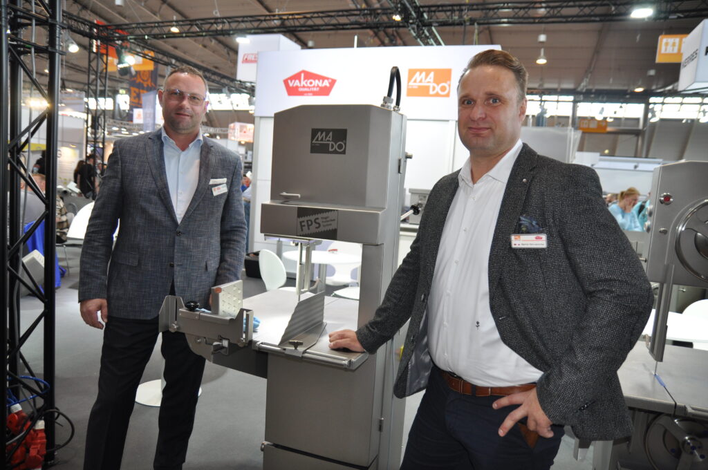 und Mario Wechselberger. © HaRo mehr anzeigen Bandsägen in höchster Vollendung stellt Mado her: Geschäftsführer Christian Höning (l.) und Vertriebsleiter Bernd Winnemöller stellten die neuesten Modelle vor. © HaRo mehr anzeigen Viele Kundenkontakte verzeichnete die 1. Bayerische Fleischerschule Landshut in Stuttgart (v. l.): Mitarbeiterin Nicole Knogler, Fachlehrer Michael Spitzauer und Schulleiterin Barbara Zinkl. © HaRo mehr anzeigen Laska-Linz Außendienstmitarbeiter Christian Schlair (r.) und Kolbe-Vertriebsleiter Michael Hüber mit Knochensäge, Model K 380 RS.© HaRo mehr anzeigen Geschäftsführer Christian Höning (l.) und Vertriebsleiter Bernd Winnemöller mit einem Vakona-Tumbler..© HaRo mehr anzeigen Gruppenfoto bei Rühle (v. l.): Vertriebsleiter Österreich Michael Vogt, Verkaufsleiter Franz Dörflinger und Laska-Linz-Außendienstmitarbeiter Christian Schlair.© HaRo mehr anzeigen Juniorchef Jost Wetter