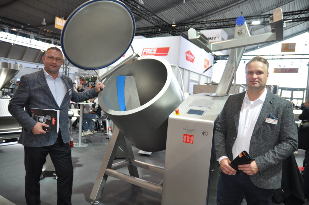 KK 500 von Frey. © HaRo mehr anzeigen Eine Weltpremiere bei Weber (v. l.): Weber-Verkaufsleiter Andre Michel und Gramiller-Verkaufsleiter Christian Hofer mit der erstmals vorgestellten Entvliesmaschine Skinner AMS 400 für das kleine Handwerk. © HaRo mehr anzeigen Gramiller-Verkaufsleiter Christian Hofer mit dem Vielzweckschneider Cubixx 120 von Holac.. © HaRo mehr anzeigen Der geschäftsführende Gesellschafter von Düker-REX, Alexander Hock, mit dem neuen Kuttermodell Blizzard 130 SLF Touch. © HaRo mehr anzeigen Vater und Sohn auf SÜFFA-Besuch: Die beiden Weidener Fleischermeister Rudolf Tallian jun. und Rudolf Tallian sen. schauten sich die neuesten Seydelmann- Handwerkskutter ganz genau an. © HaRo mehr anzeigen Hygieneexperten und Stammgäste bei der SÜFFA (v. l.): Werner, Petra und Martin Ernst.© HaRo mehr anzeigen Räucher- und Klimaexperte Ralf Fifielski präsentierte die neueste Luftumwälzungsanlage für die kontinuierliche Wurstreifung vom Maurer-Atmos.© HaRo mehr anzeigen Deutschland-Verkaufsleiter Andreas Gillrath mit der neuen WOW-Serie von Wiberg. © HaRo mehr anzeigen Gramiller-Verkaufsleiter Christian Hofer mit dem Pökelinjektor IMAX 350 aus der Eco-Line von JBT Schröder.©HaRo mehr anzeigen Gramiller-Verkaufsleiter Christian Hofer mit einem Modell der ECO. Line von Fessmann. ©HaRo mehr anzeigen Gebietsverkaufsleiter Thorsten Ries stellte das Hygienic Floor System von PHT vor. © HaRo mehr anzeigen Eröffnung und Wurstanschnitt am Samstag 21.10. (v. l. n. r. Joachim Lederer, Landesinnungsmeister des LIV BW; Raimund Plautz, Bundesinnungsmeister der Fleischer Österreich, Vorsitzender Wirtschaftskammer Österreich — Berufsgruppe Fleischer; Ministerialdirigentin Isabel Kling, Ministerium für Ernährung, Ländlichen Raum und Verbraucherschutz Baden-Württemberg; Stefan Lohnert, Geschäftsführer Messe Stuttgart). (©Landesmesse Stuttgart GmbH) mehr anzeigen ◄ ►