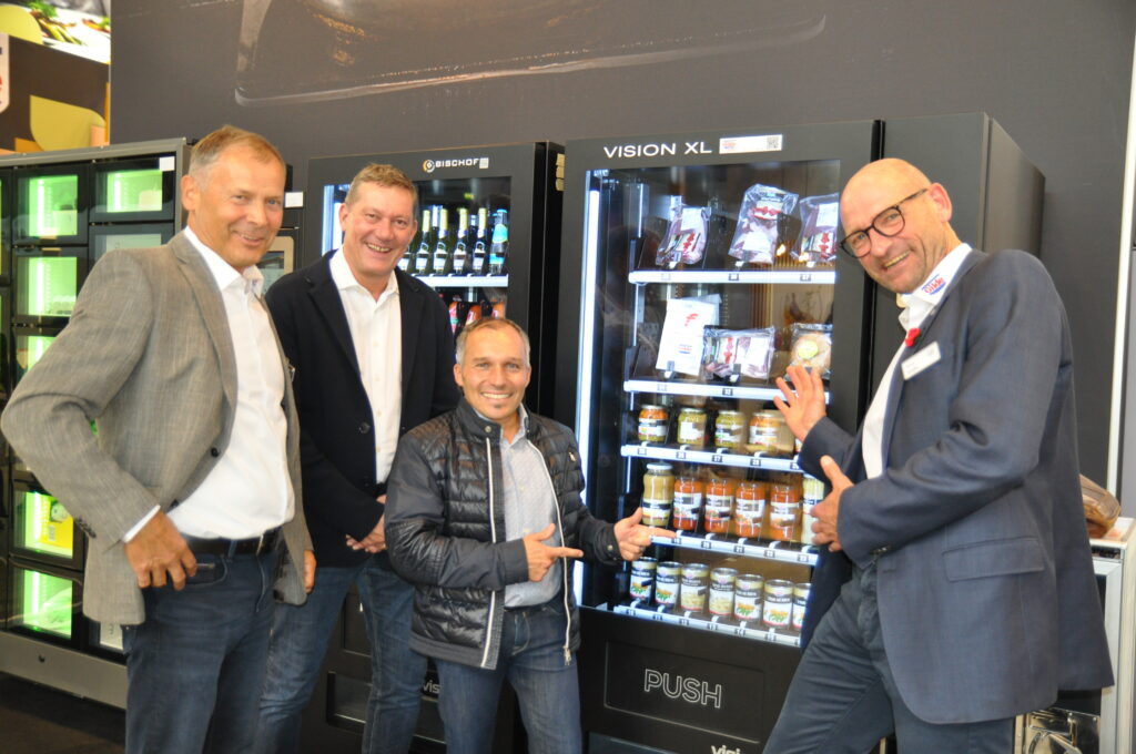 aus Wien, Daniel Schwarzböck aus Göllersdorf und Andreas Theurer von der Fleischerei Pfennigbauer aus Hausleiten. © HaRo mehr anzeigen Verkaufsautomaten boomen unablässig (v. l.): Zentrag-Vertriebsleiter Udo Krause, Bischof- Automaten Verkaufsleiter Bernd Schnetzer, Andreas Bischof und Zentrag- Vorstandssprecher Rainer Laabs. © HaRo mehr anzeigen Projektmanager Michael Moser von der Maschinenfabrik Laska in Traun mit der neuen Mischmaschine ME 1500 mit seitlicher Klappe. © HaRo mehr anzeigen Verkaufsleiter Ralf Zuckschwerdt mit einer neuen Bedford-Spezialität: der gefüllten Entenbrust. © HaRo mehr anzeigen Kundenmanager Christoph Pölloth von Marel präsentierte den Würfelschneider FELIX von Treif. © ©HaRo mehr anzeigen Vorarlberger Fleischerei zu Gast bei KG-Wetter auf der SÜFFA (v. l.): Gramiller-Verkaufsleiter Christian Hofer, Volker Grebe, Dieter und Christian Schatz sowie Hanna Elsen..© HaRo mehr anzeigen Tiroler Speck- und