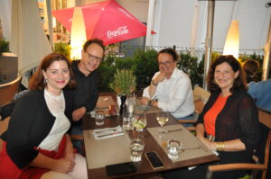 Abendessen im Steakhaus Goritschnigg (v. l.): SÜFFA- Projektleiterin Sophie-Kristin Stähle, Fleischermeister Thomas Goritschnigg, das Mitglied der Geschäftsführung der Stuttgarter Messe, Andreas Wiesinger und Ulrike Mayer, Österreich-Repräsentanz der Messe Stuttgart. © HaRo