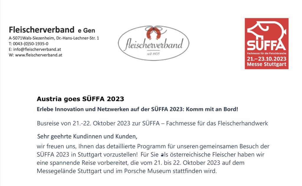 Austria goes SÜFFA 2023 – Hier finden Sie den genauen Ablauf der Reise und die Einladung!