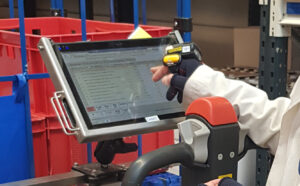 Mit dem Handscanner werden Waren bei der Kommissionierung direkt erfasst und auf dem Touchpad notiert. © Beigestellt