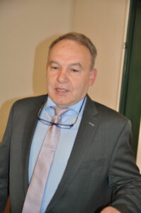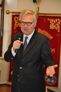 Zunftmeisterin Regina Waldum bedankte sich besonders beim Geschä!sführer der Bundessparte Gewerbe und Handwerk, Prof. Dr. Reinhard Kainz, bei der Leiterin des Institutes für angewandte Gewerbeforschung, DI Heidrun Bichler-Ripfel, der Historikerin Mag. Sylvia Weber und Museumsdirektor Mag. Anton Ehrenberger für ihre Unterstützung. Besonders froh war sie, dass ihr Vorgänger Josef Höchtl bereits 2019 eine Chronik erstellen hat lassen und somit viel Vorarbeit bereits getan war. Als weitere Ehrengäste konnte die Zunftmeisterin den Generalsekretär der österreichischen UNESCO-Kommission Mag. Martin Fritz, Bürgermeister von Gars, Ing. Martin Falk begrüßen, der übrigens auch selbst ein Zunftmitglied ist. Darüber hinaus den Bezirkshauptmann Mag. Stefan Grusch, den Landtagsabgeordneten Ing. Franz Linsbauer und Landtagsabgeordneten a. D. Josef Wiesinger, den Landesinnungsmeister der Fleischer Niederösterreich Jakob Ellinger, Pfarrer Mag. Robert Bednarski, die Horner Bezirksstellenobfrau der Wirtschaftskammer Niederösterreich Margarete Jarmer, den Leiter der Arbeiterkammer Horn Andreas Riedl und die Vizebürgermeisterin von Gars Paula Uitz.