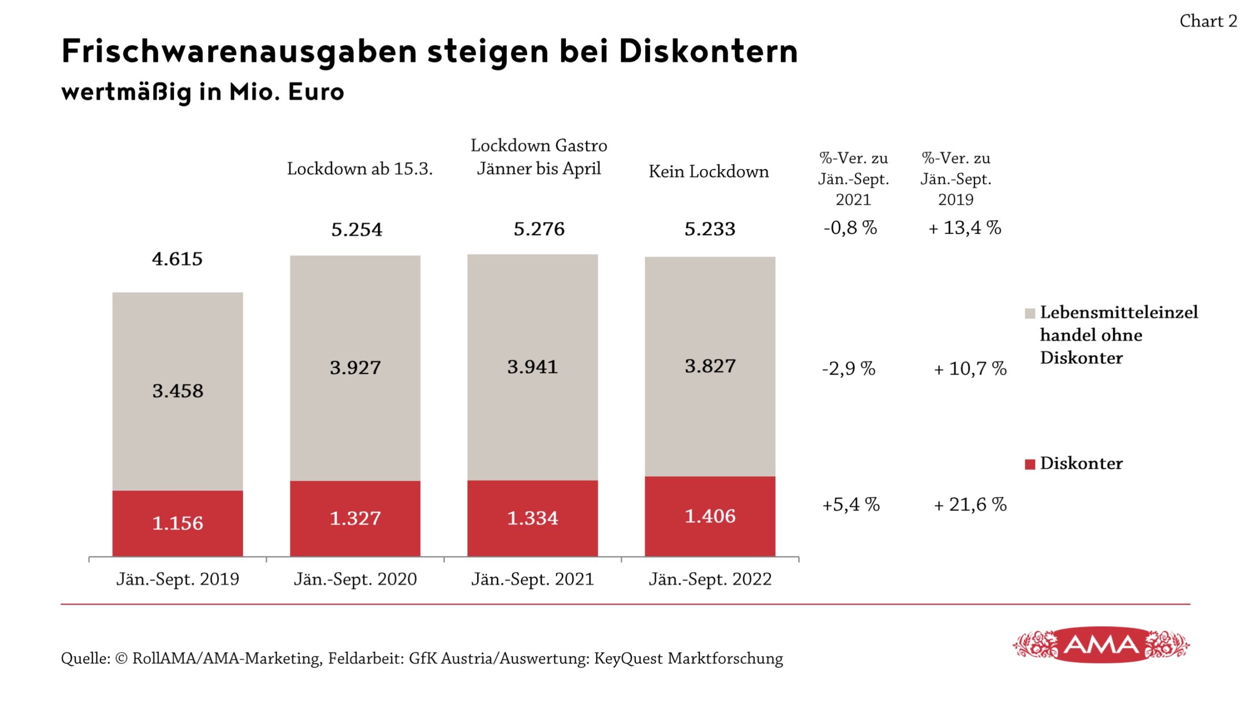 Preiserhöhungen auf der anderen Seite führten zu rückläufigen Einkaufsfrequenzen. Gleichzeitig stagnieren die Mengen pro Einkauf. Der Bedarf an Milch, Fleisch und Gemüse sank in den ersten drei Quartalen besonders stark. Trotz höherer Preise konnten nur in wenigen Warengruppen wie Butter und Eier Umsatzzuwächse erzielt werden.