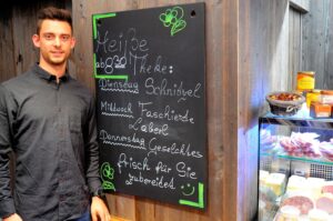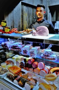 „Die harten Hauswürstel oder die Steinfelder Jaus’nstangerl, eine Cabanossi, bereitet er sogar nach unserem Rezept zu“, wurden dafür Anleihen bei Thomas’ Urgroßvater genommen. Freilich ein wenig modernisiert, sprich: mit weniger Fettanteil, zubereitet. Beide sind (wie die Bauernblunzen) bereits ein Renner im Frühgeschäft, das nur – zwei Kreuzungen von der A2-Auffahrt entfernt – blüht. An allen Werktagen wird daher auch bereits um 7 Uhr geöffnet im Bad Fischauer Familienbetrieb.